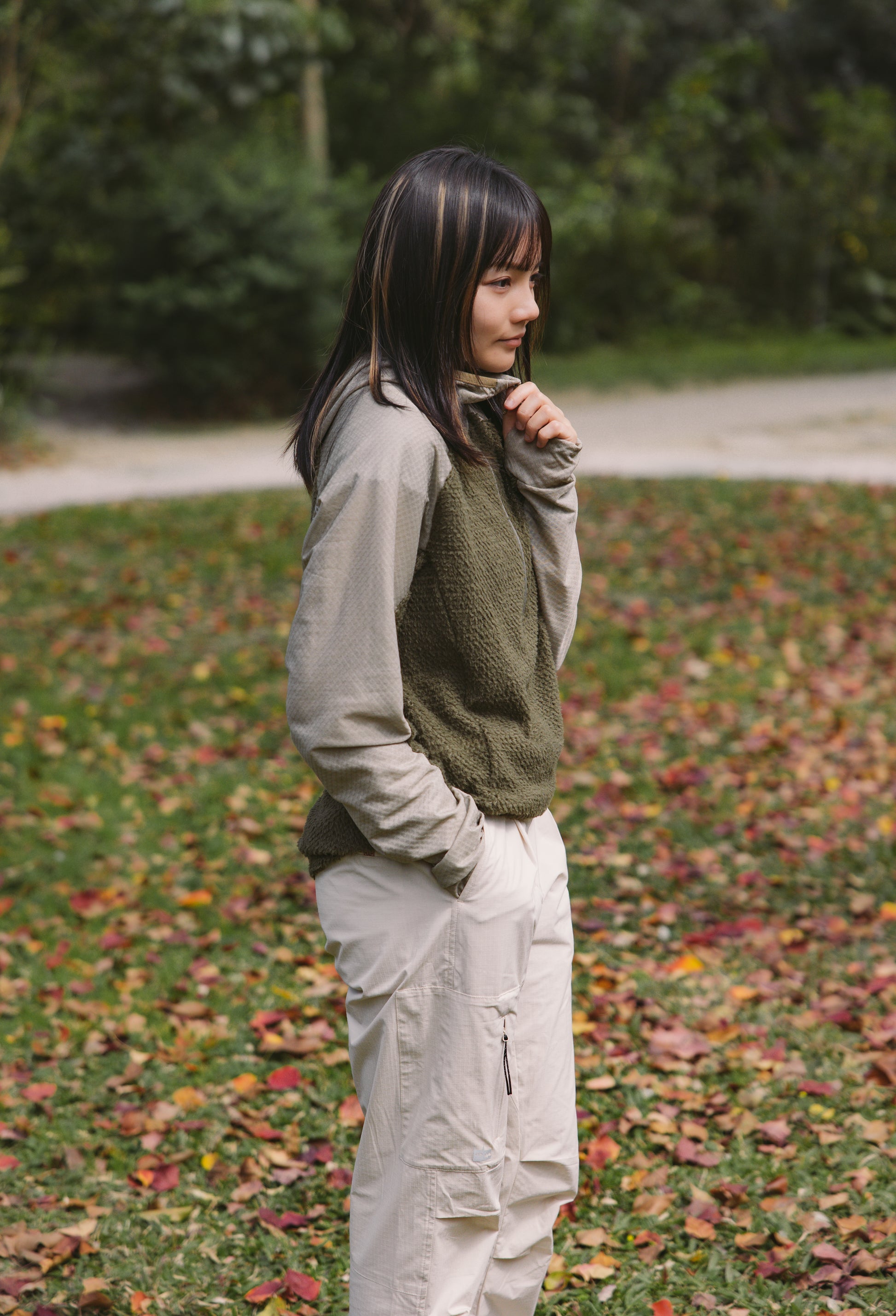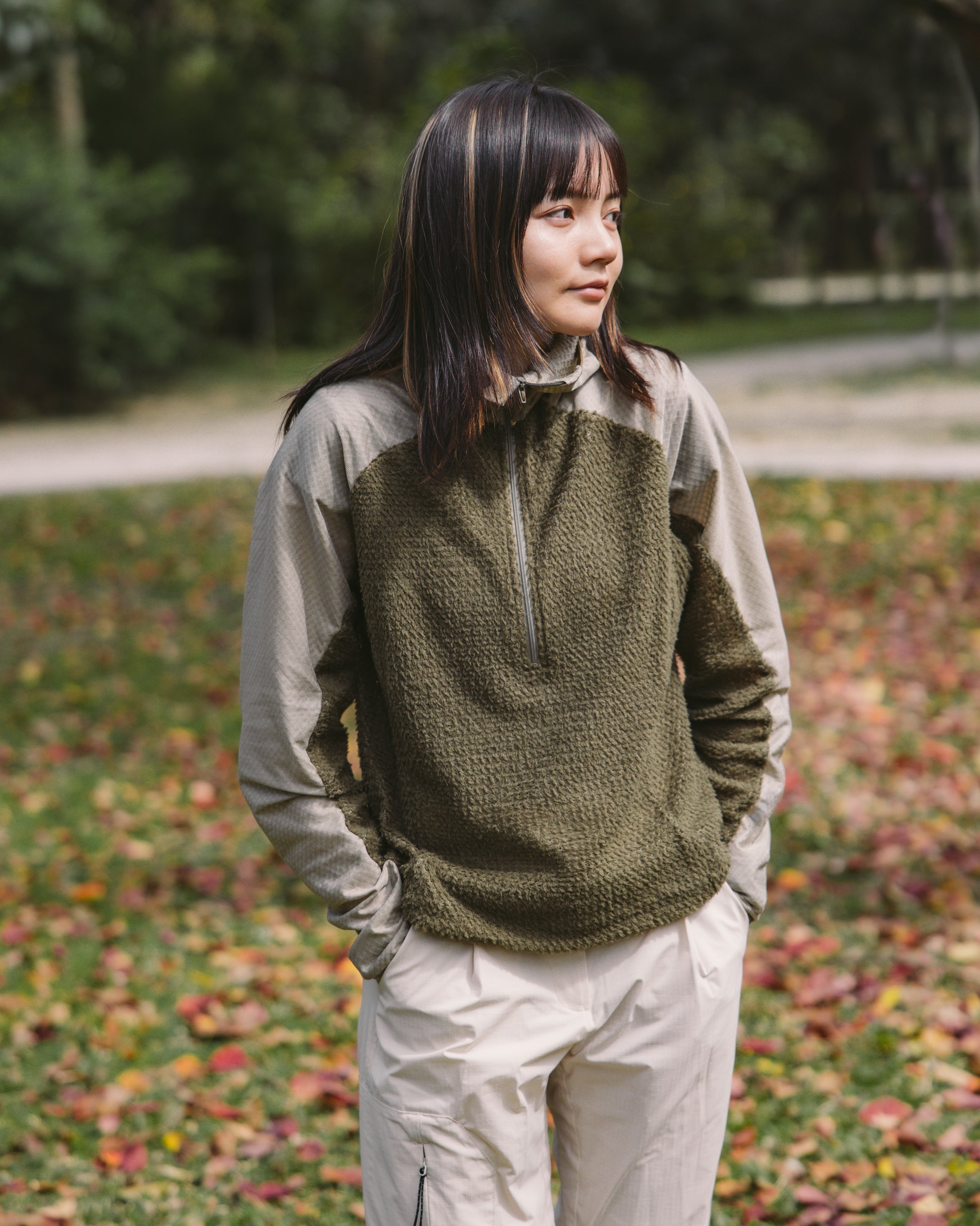 除了用耐磨性更佳的 Octa® 單面刷毛布料,透過包覆式剪裁提升保暖效果。